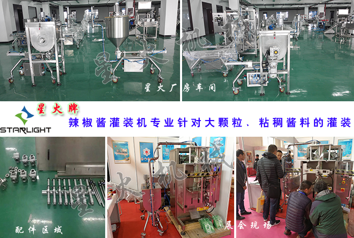 星火包裝機械長期以來一直致力于醬料包裝機、醬料灌裝機的生產銷售,專門生產出針對大顆粒醬料的灌裝,在國內備受廣大企業的關注與信賴,為了更好的回饋新老客戶的厚愛支持,我們始終保證質量優越,技術先進,服務周到。