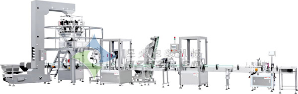 塑料瓶裝食用鹽自動包裝生產(chǎn)線設(shè)備組成: